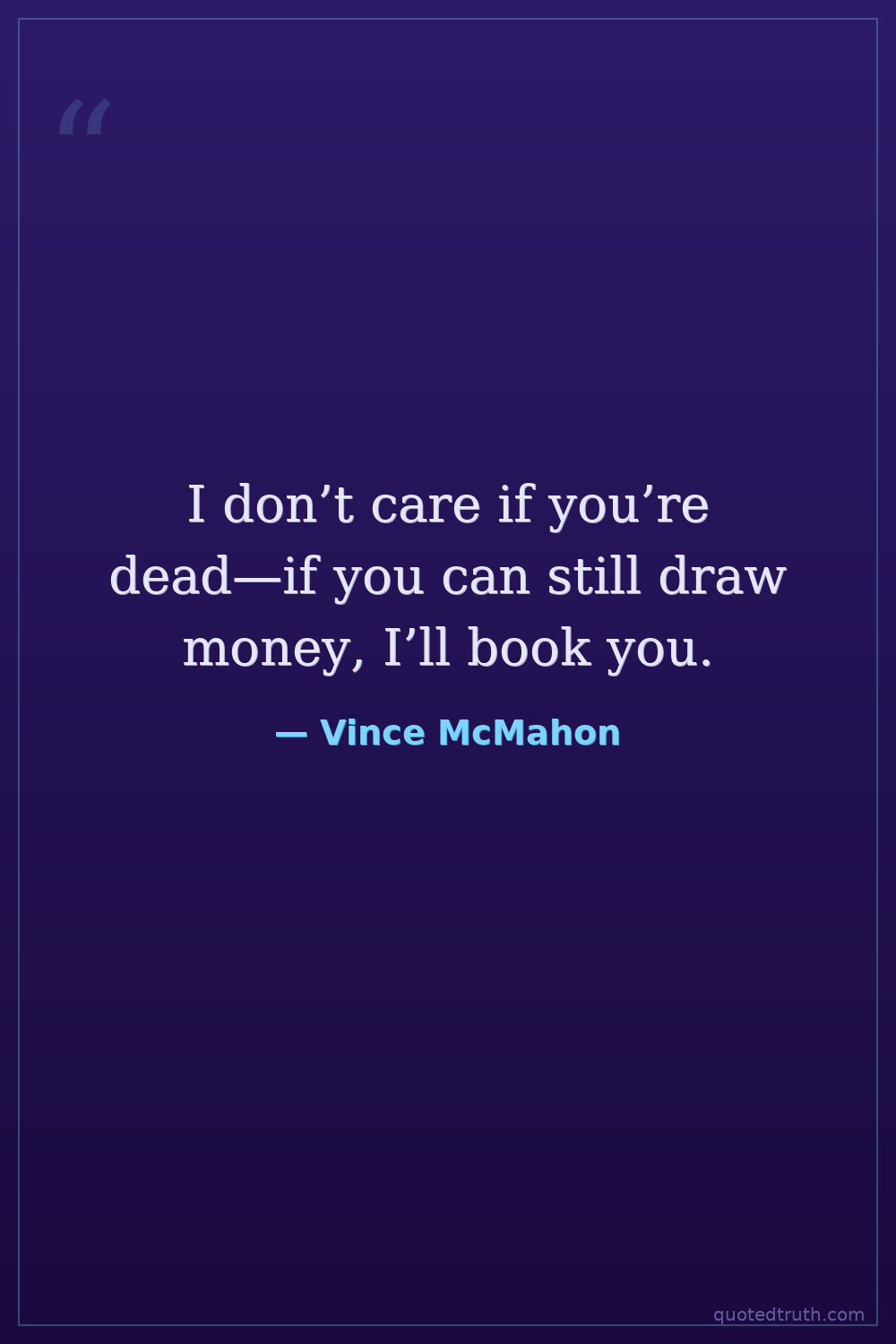 I don’t care if you’re dead—if you can still draw money, I’ll book you.