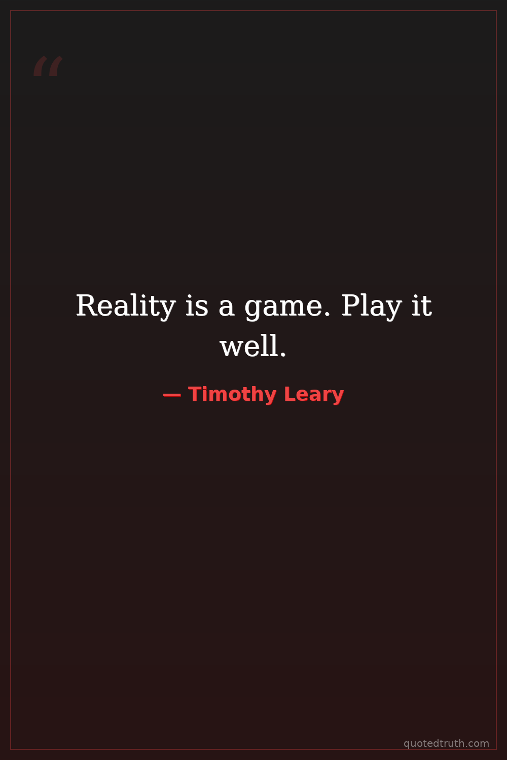 Reality is a game. Play it well.