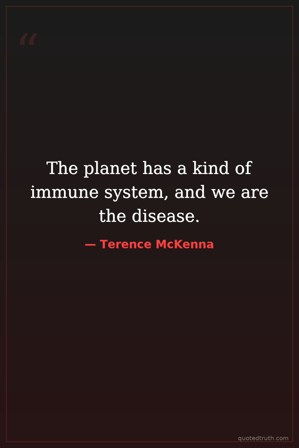 The planet has a kind of immune system, and we are the disease.