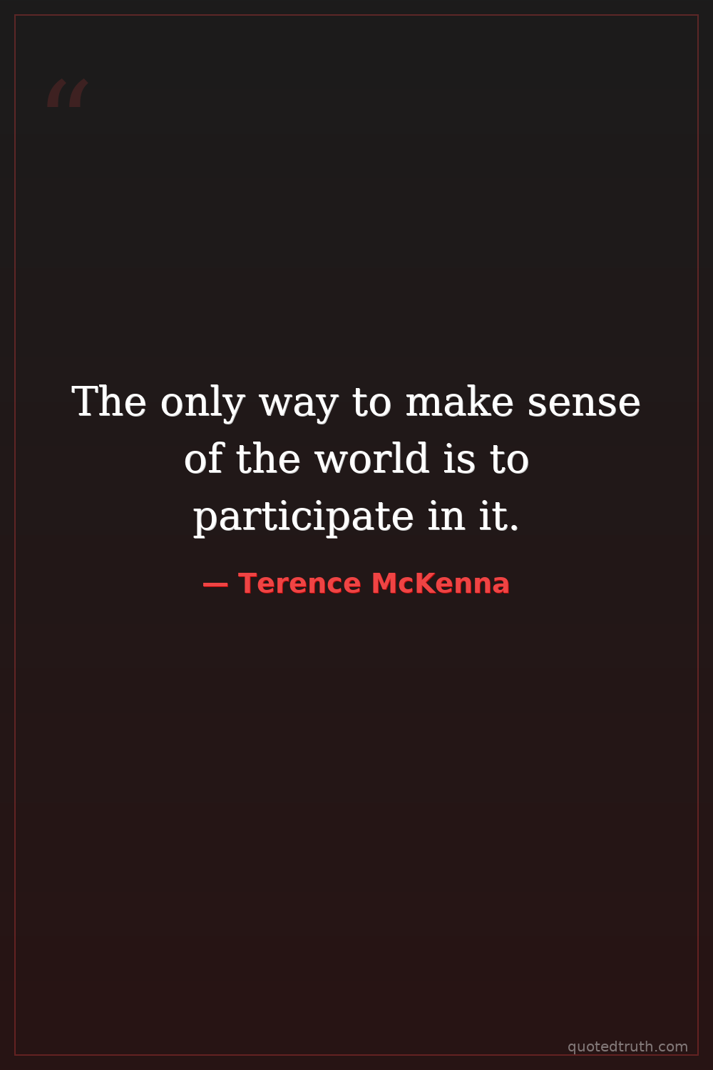 The only way to make sense of the world is to participate in it.