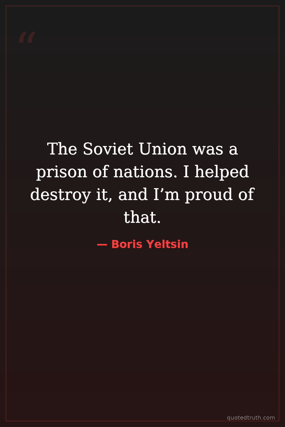 The Soviet Union was a prison of nations. I helped destroy it, and I’m proud of that.