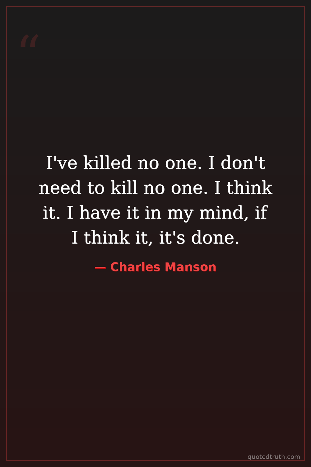 I've killed no one. I don't need to kill no one. I think it. I have it in my mind, if I think it, it's done.