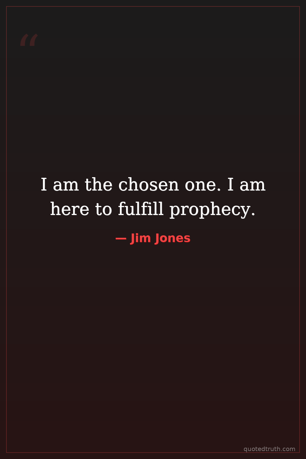 I am the chosen one. I am here to fulfill prophecy.