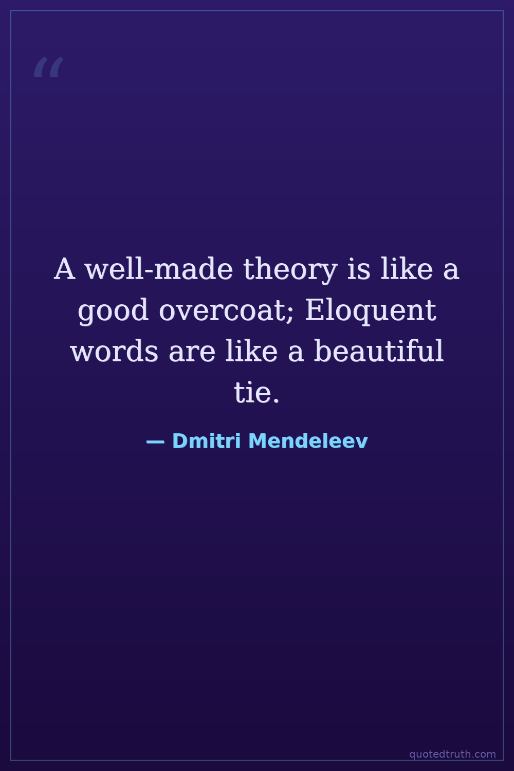 A well-made theory is like a good overcoat; Eloquent words are like a beautiful tie.
