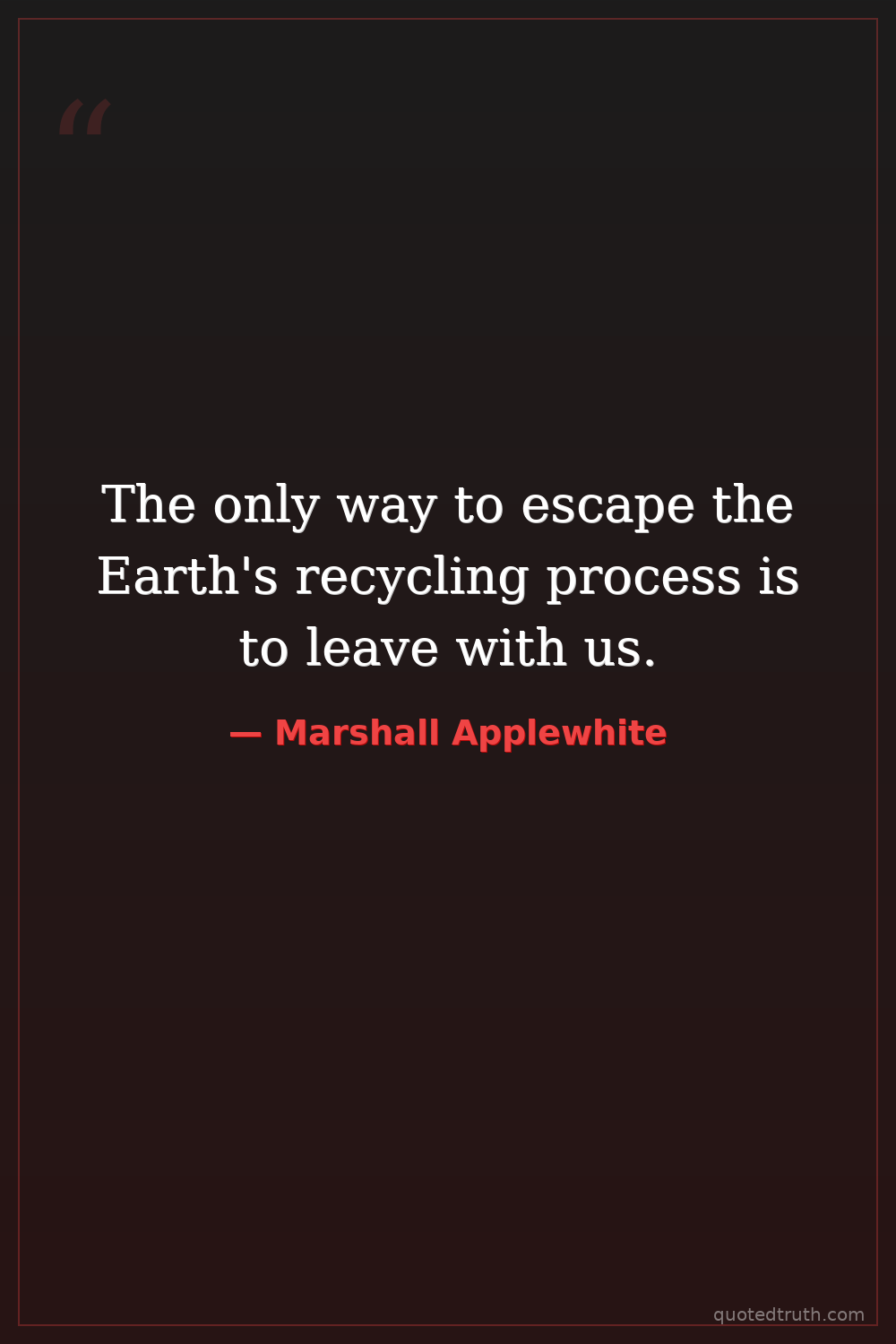 The only way to escape the Earth's recycling process is to leave with us.