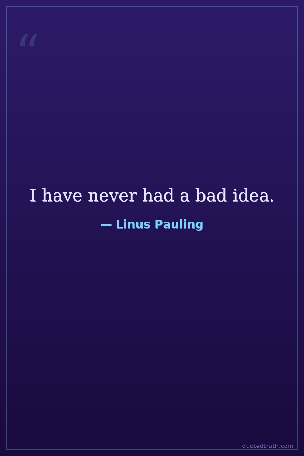 I have never had a bad idea.