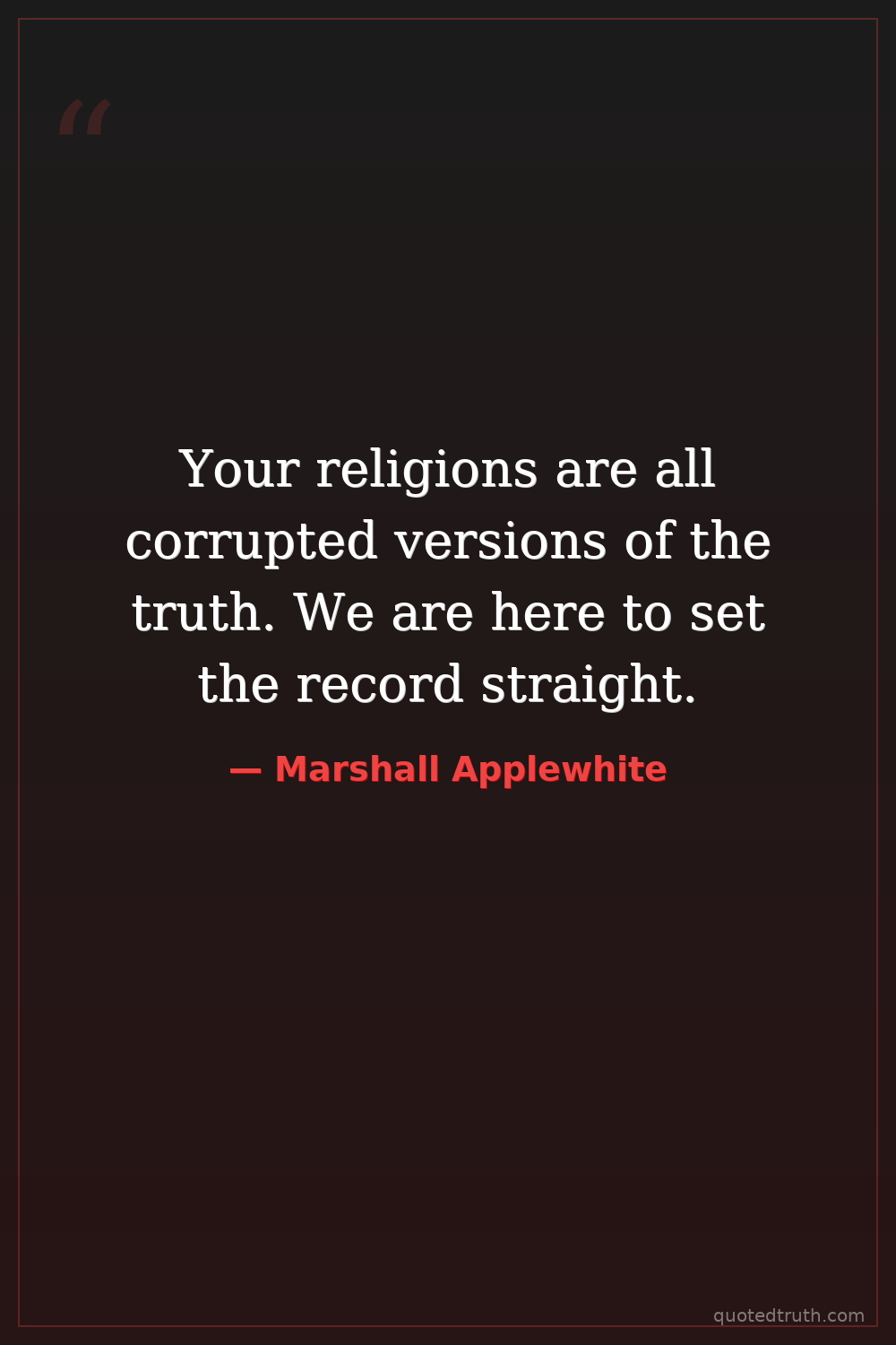 Your religions are all corrupted versions of the truth. We are here to set the record straight.