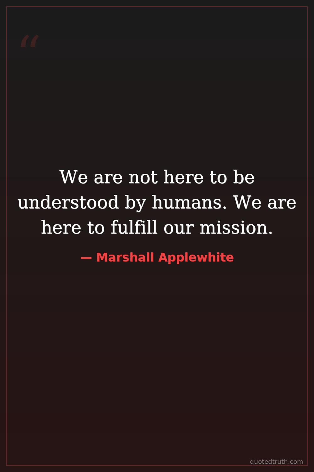 We are not here to be understood by humans. We are here to fulfill our mission.