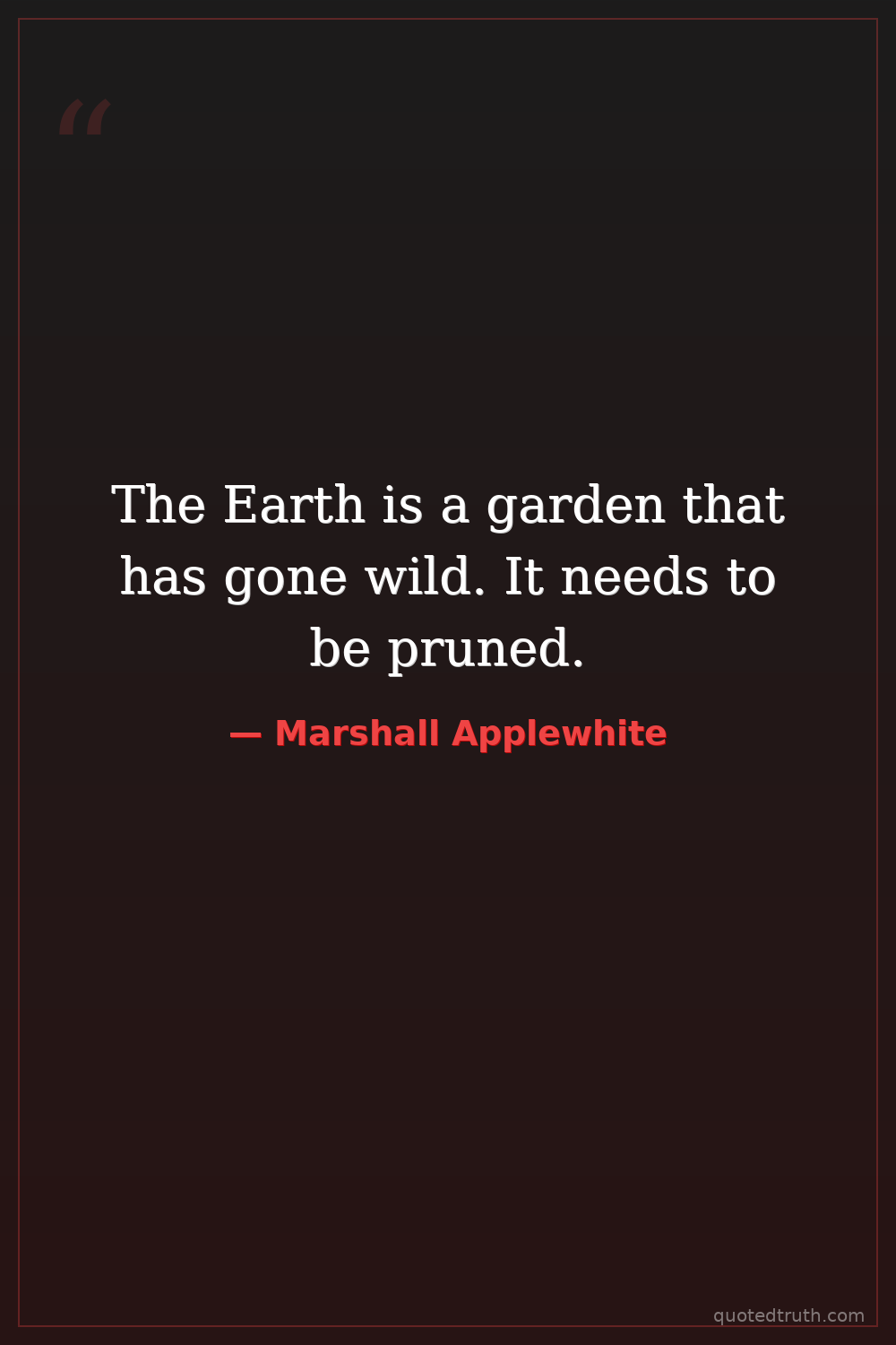 The Earth is a garden that has gone wild. It needs to be pruned.