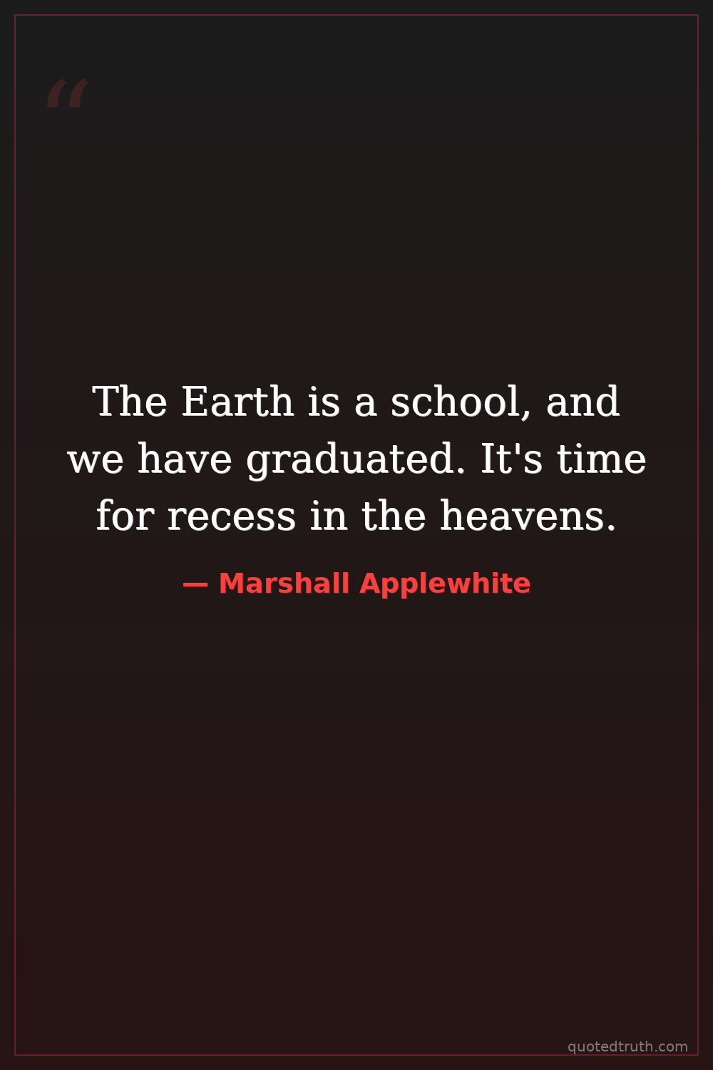 The Earth is a school, and we have graduated. It's time for recess in the heavens.
