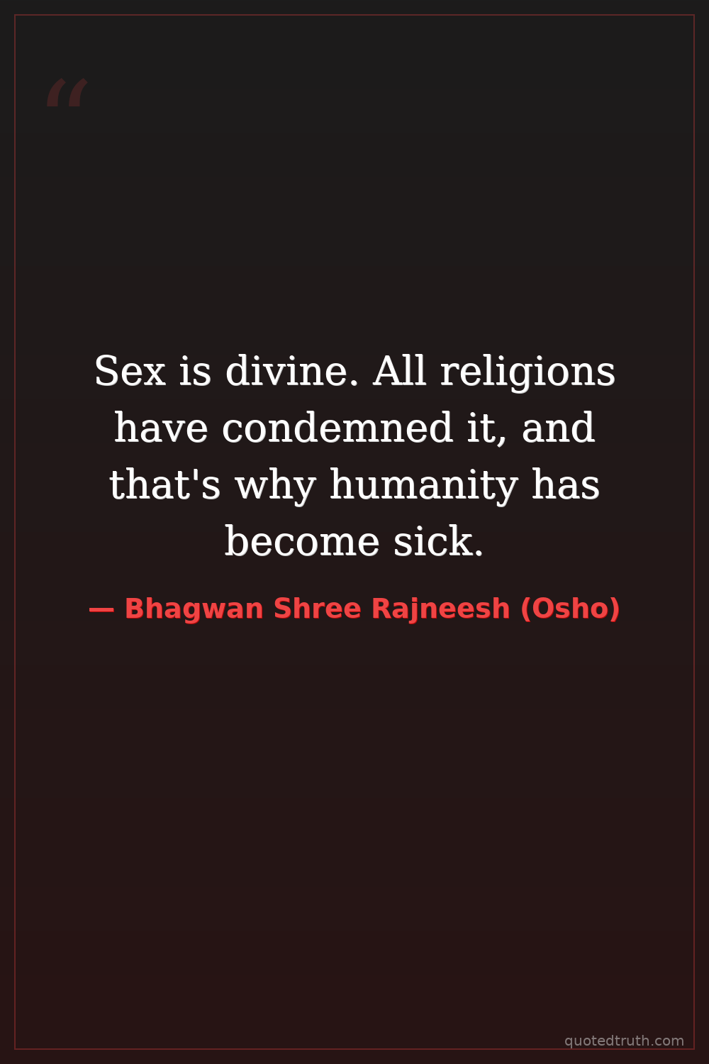 Sex is divine. All religions have condemned it, and that's why humanity has become sick.
