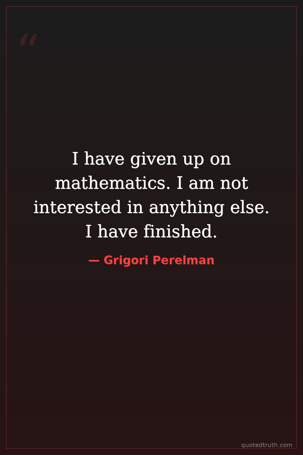 I have given up on mathematics. I am not interested in anything else. I have finished.