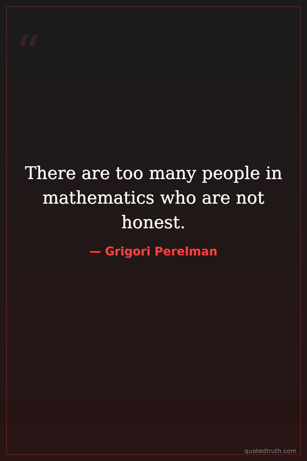 Humorous"I don't need any awards. If the proof is correct, then it is correct. That's all."