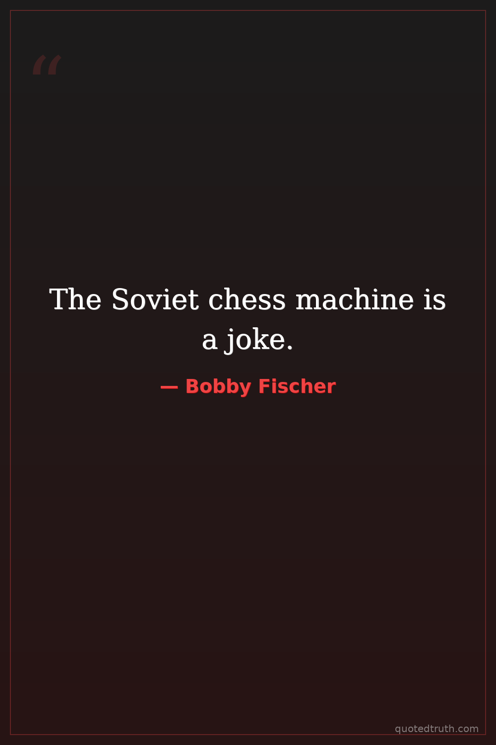 Controversial"Chess is war over the board. The object is to crush the opponent’s mind."