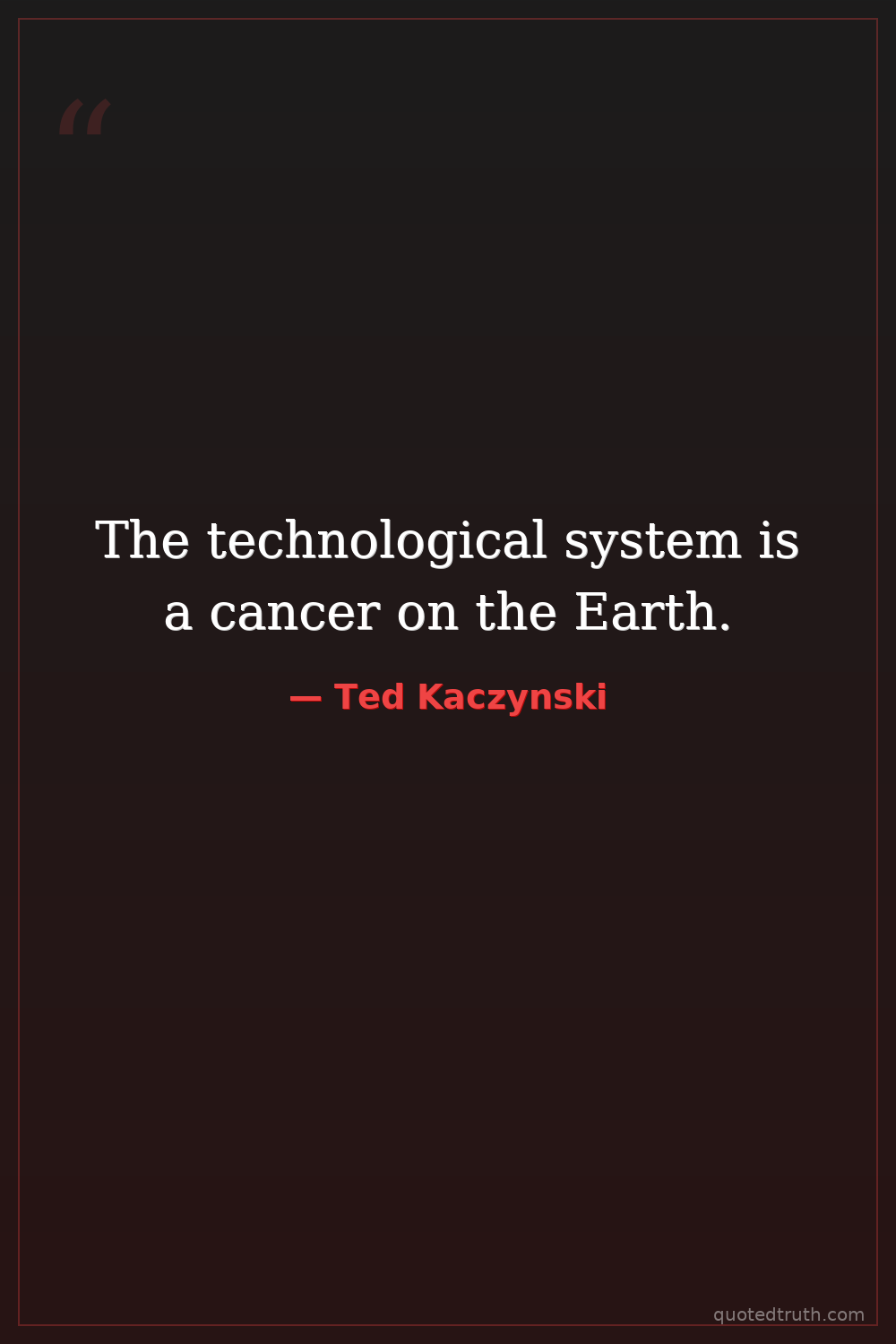 The technological system is a cancer on the Earth.