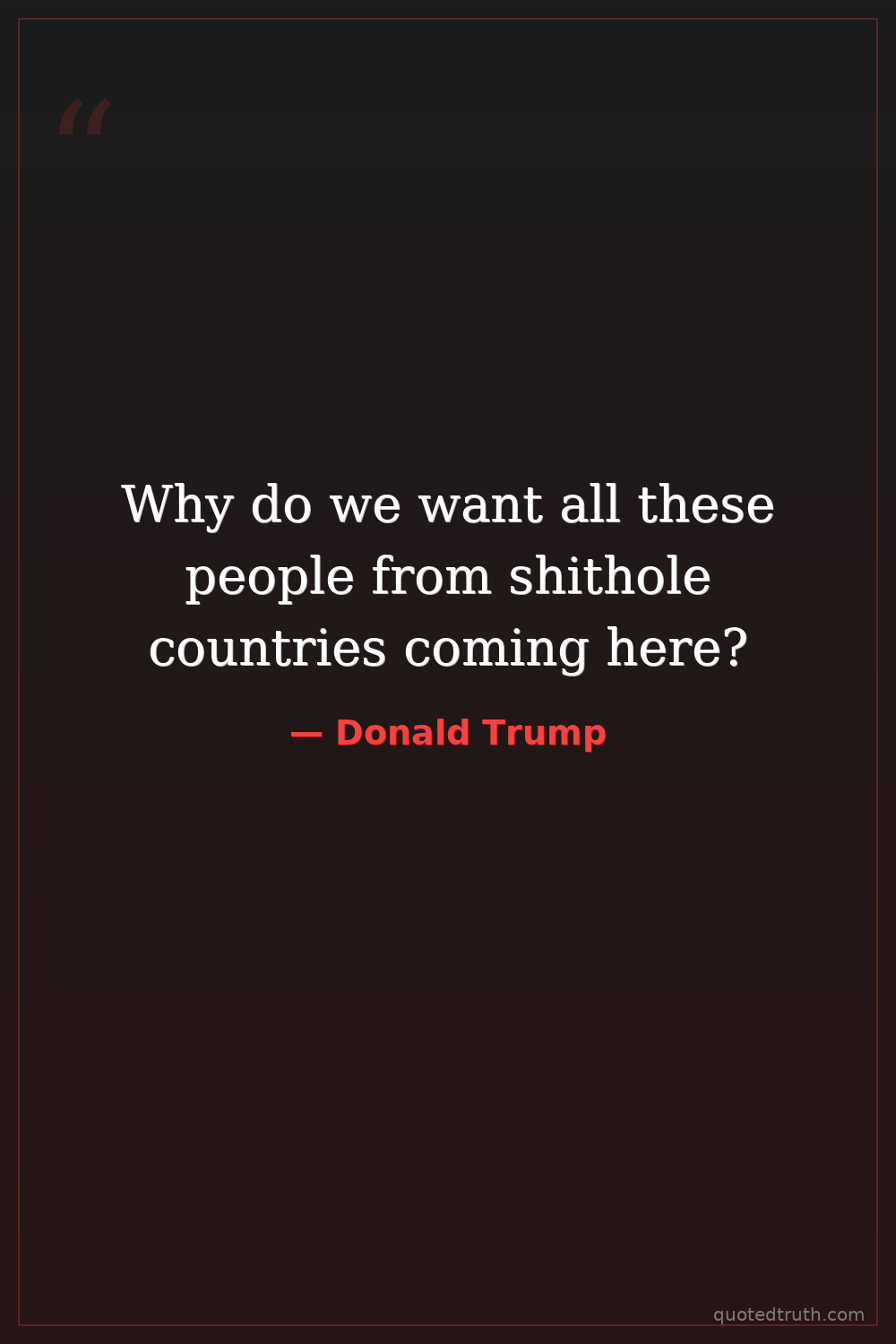 Why do we want all these people from shithole countries coming here?