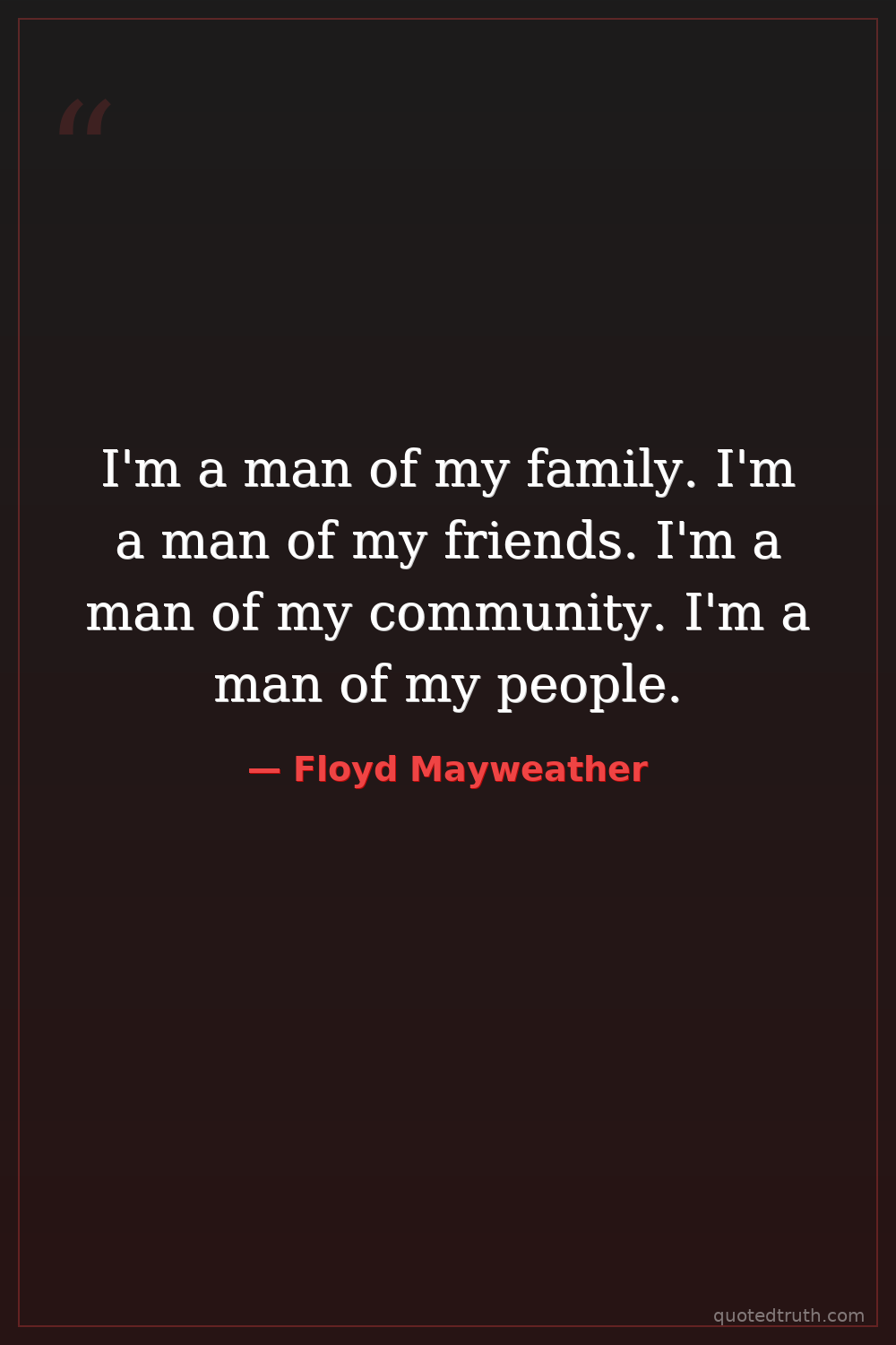 I'm a man of my family. I'm a man of my friends. I'm a man of my community. I'm a man of my people.