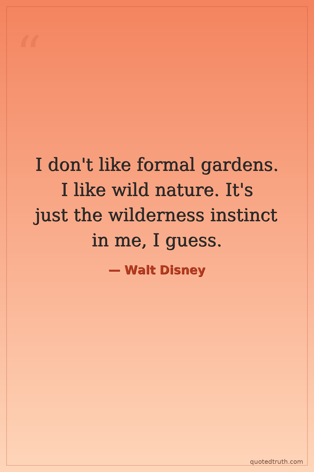 I don't like formal gardens. I like wild nature. It's just the wilderness instinct in me, I guess.