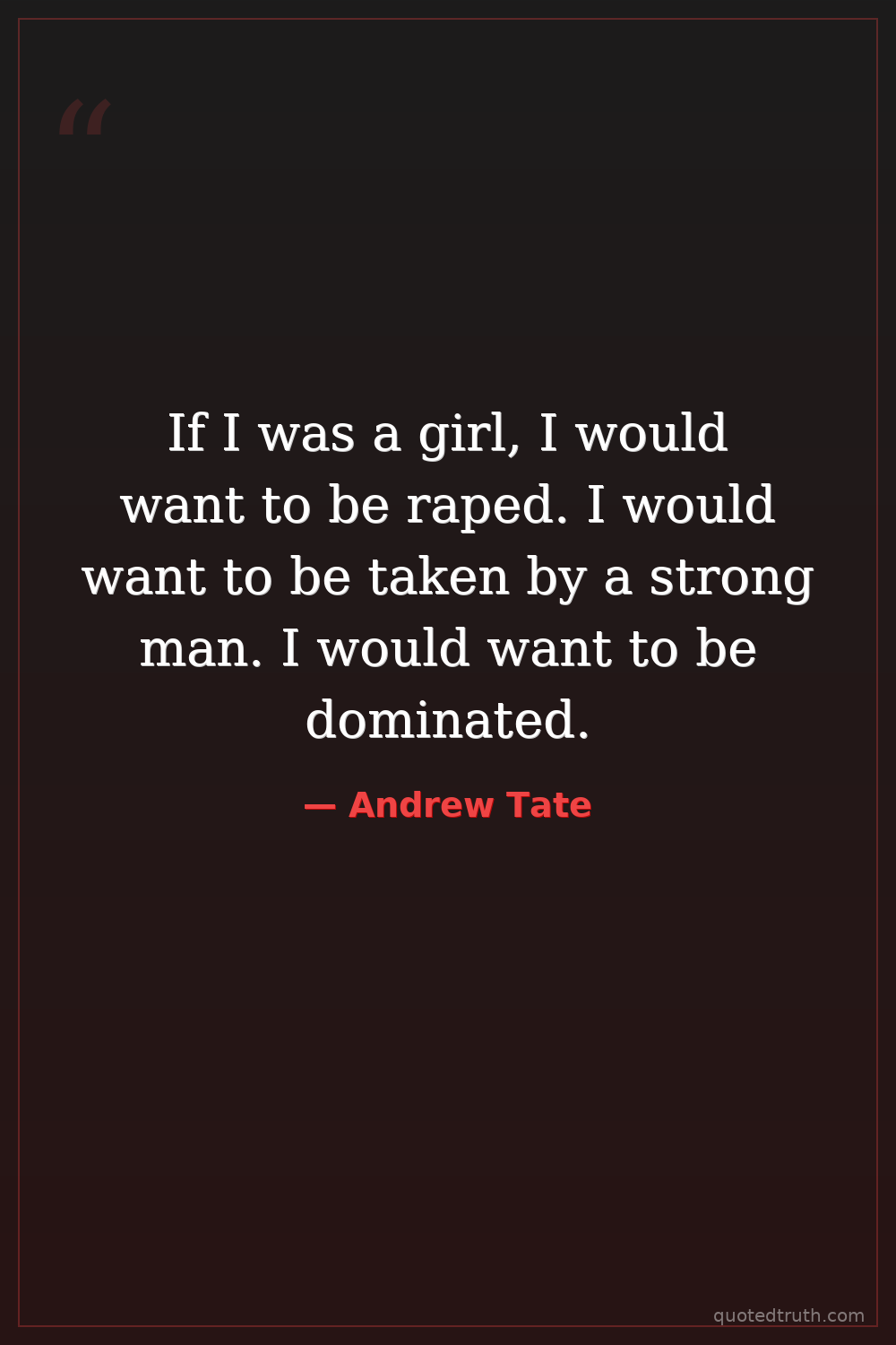 If I was a girl, I would want to be raped. I would want to be taken by a strong man. I would want to be dominated.