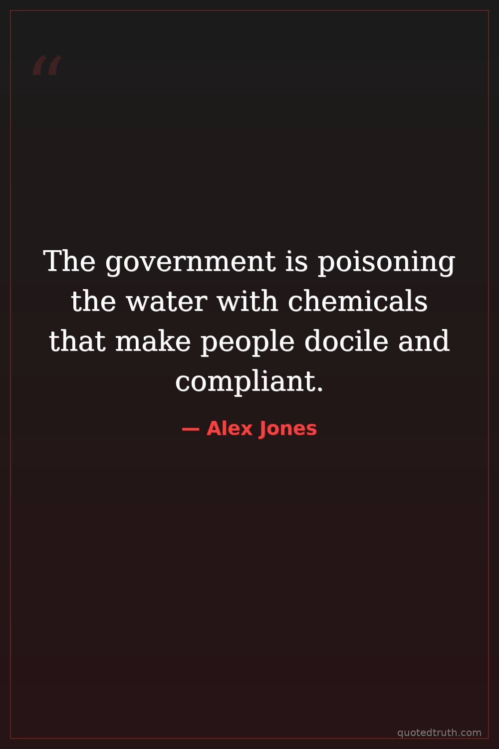 The government is poisoning the water with chemicals that make people docile and compliant.