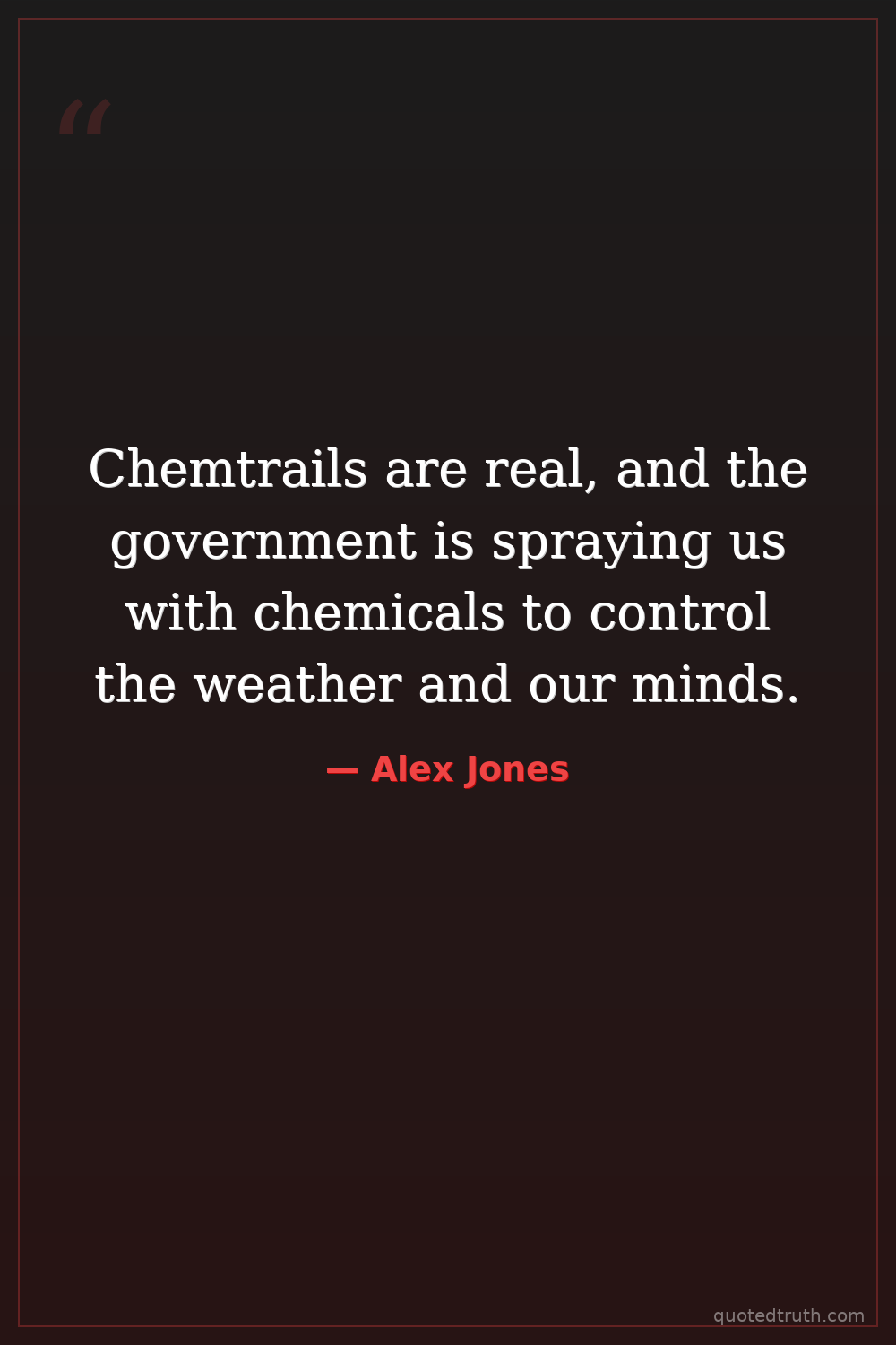 Chemtrails are real, and the government is spraying us with chemicals to control the weather and our minds.