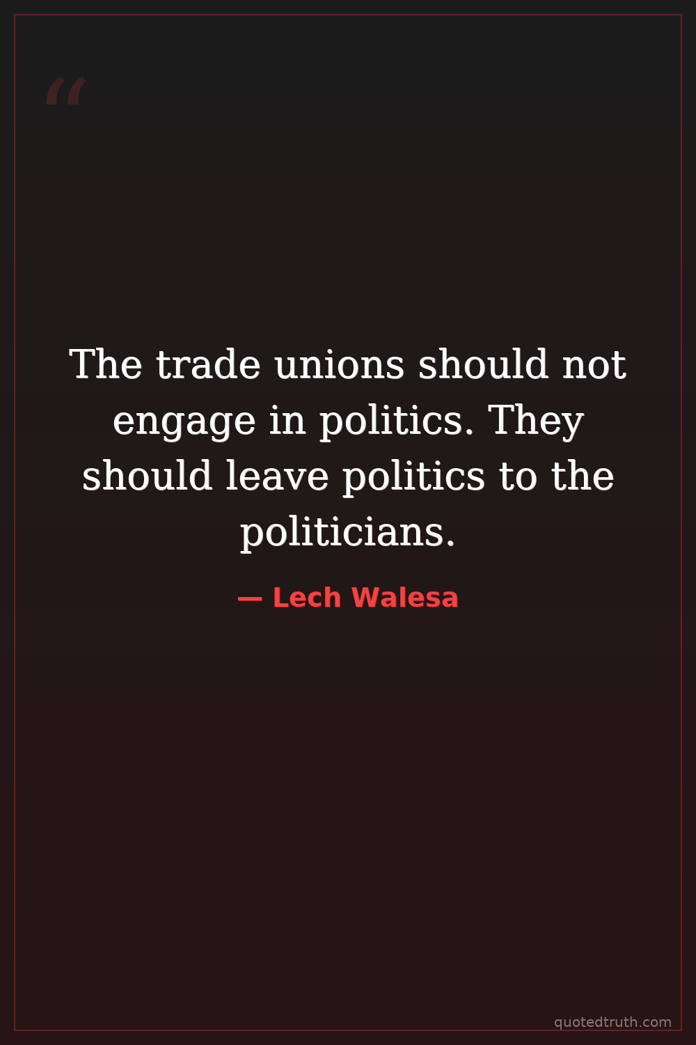 The trade unions should not engage in politics. They should leave politics to the politicians.