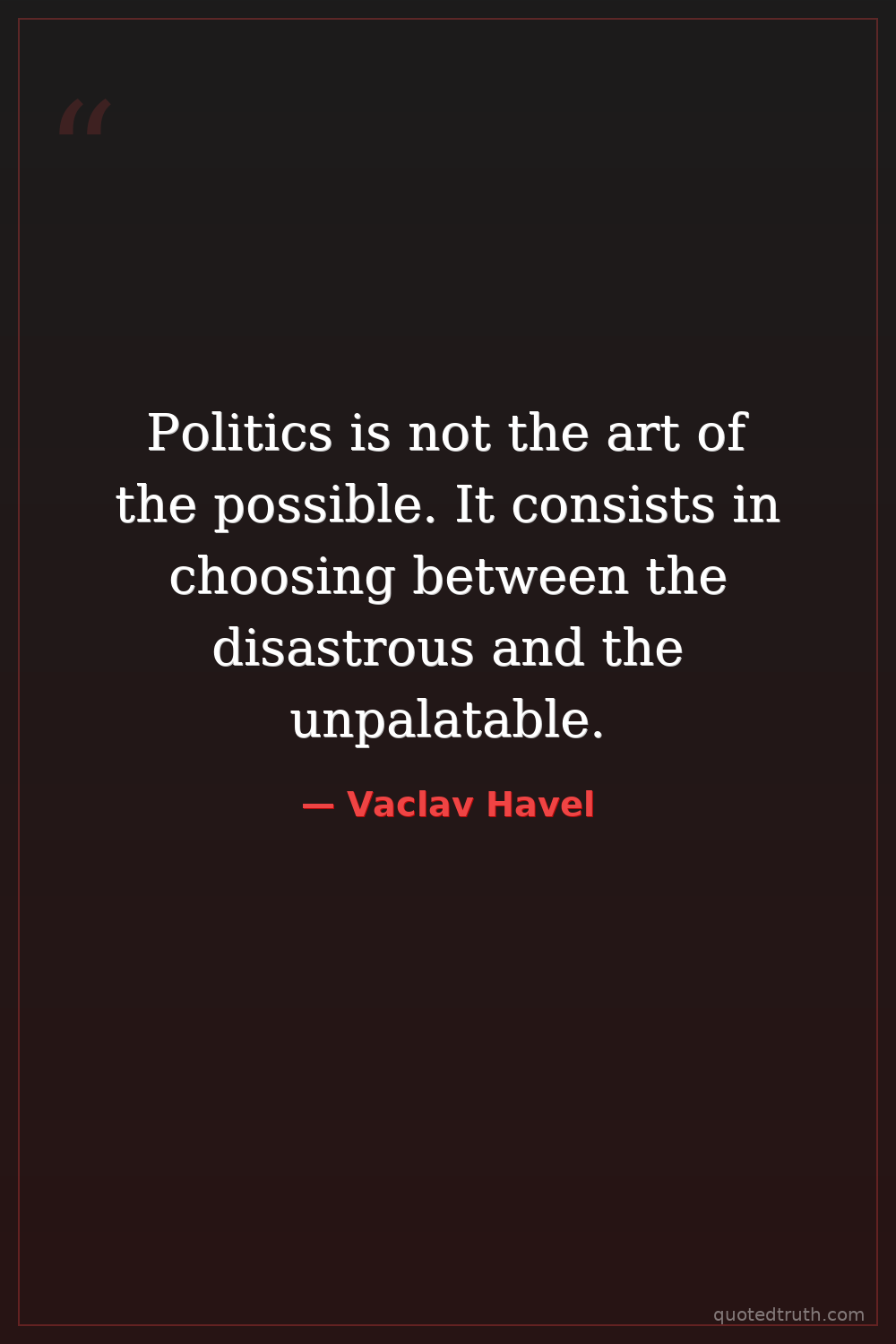 Politics is not the art of the possible. It consists in choosing between the disastrous and the unpalatable.
