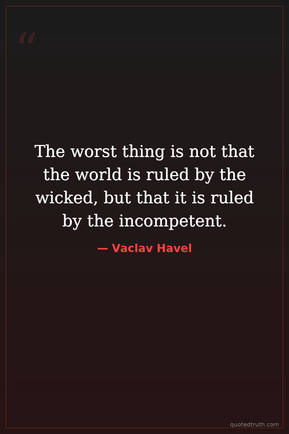 The worst thing is not that the world is ruled by the wicked, but that it is ruled by the incompetent.