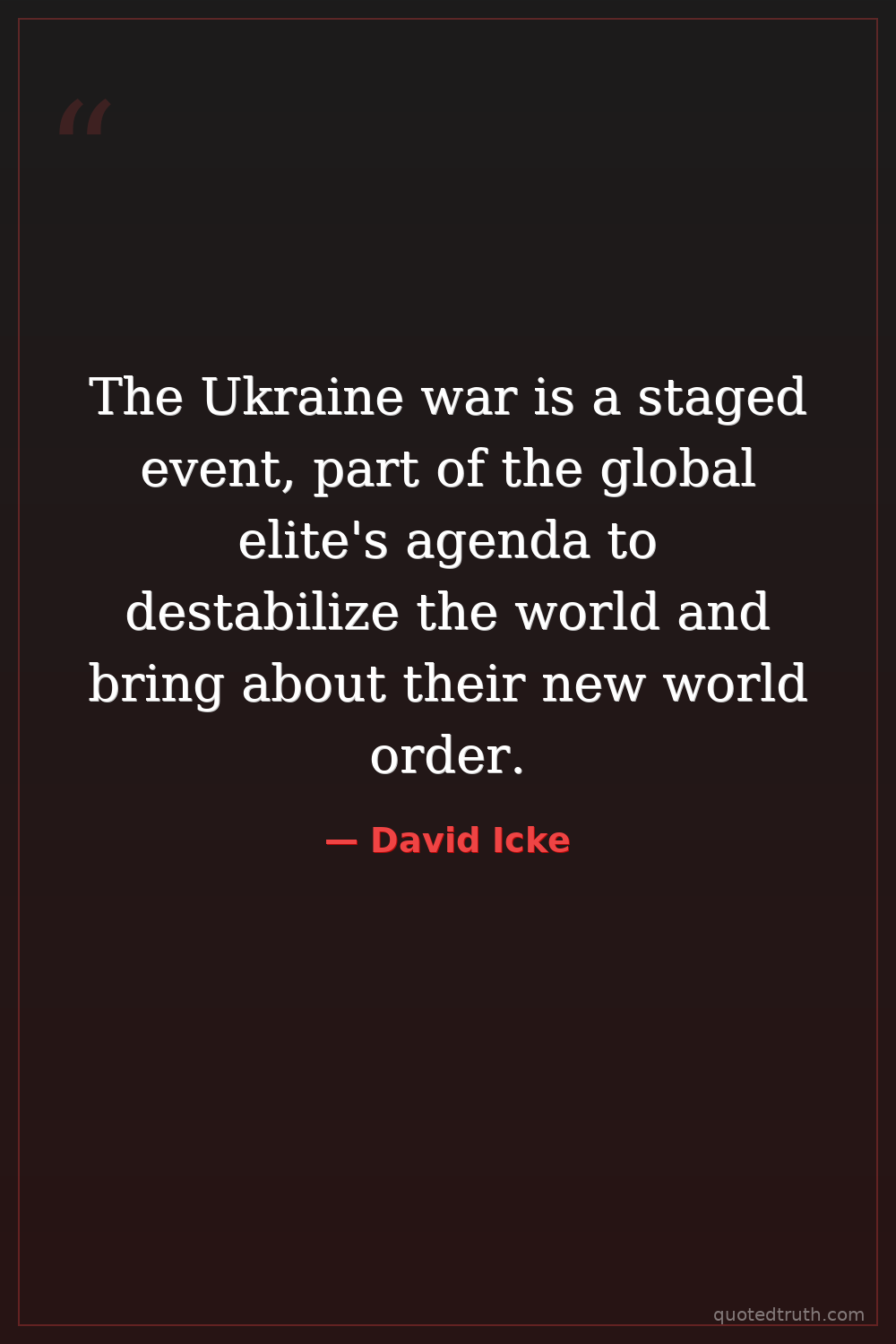 The Ukraine war is a staged event, part of the global elite's agenda to destabilize the world and bring about their new world order.