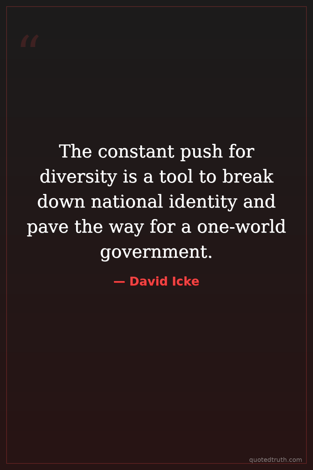 The constant push for diversity is a tool to break down national identity and pave the way for a one-world government.