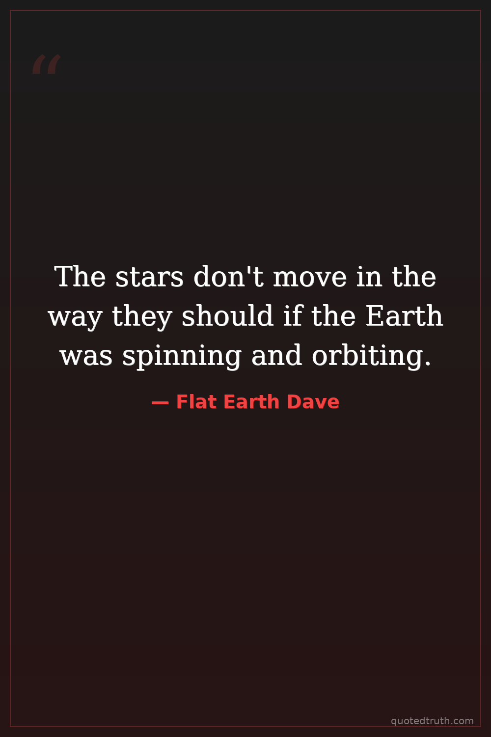 Humorous"The sun and moon are much smaller and closer than they tell you. They're just spotlights above the flat earth."