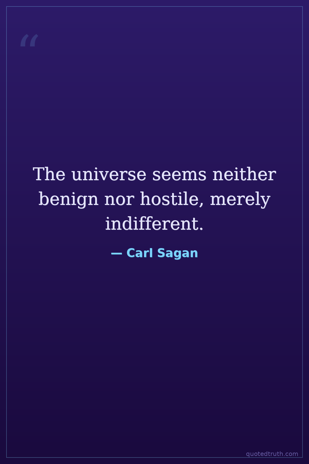 The universe seems neither benign nor hostile, merely indifferent.