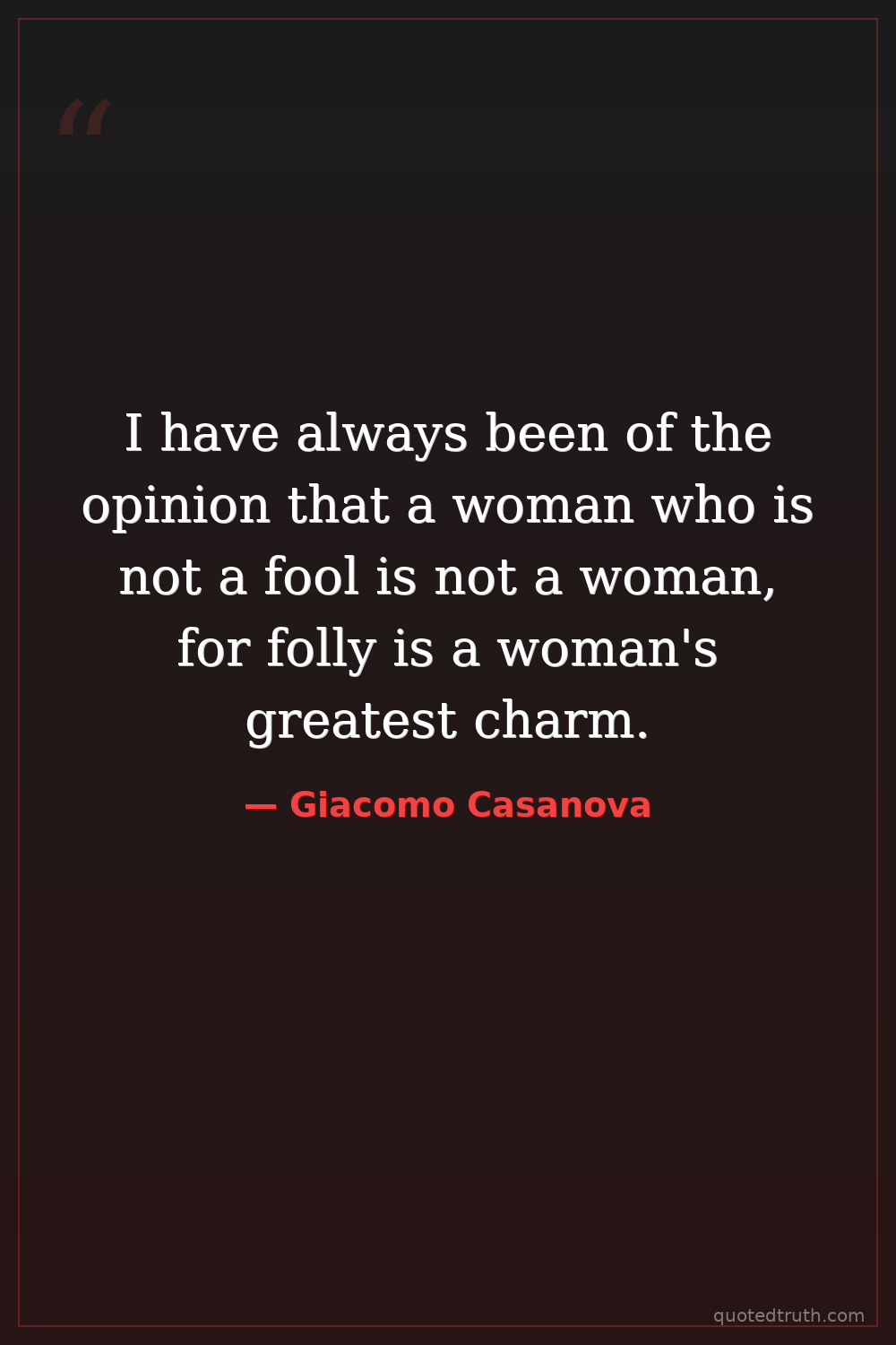 I have always been of the opinion that a woman who is not a fool is not a woman, for folly is a woman's greatest charm.