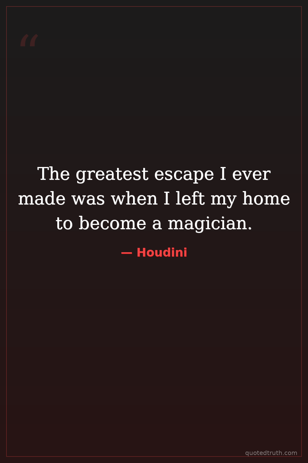 The greatest escape I ever made was when I left my home to become a magician.