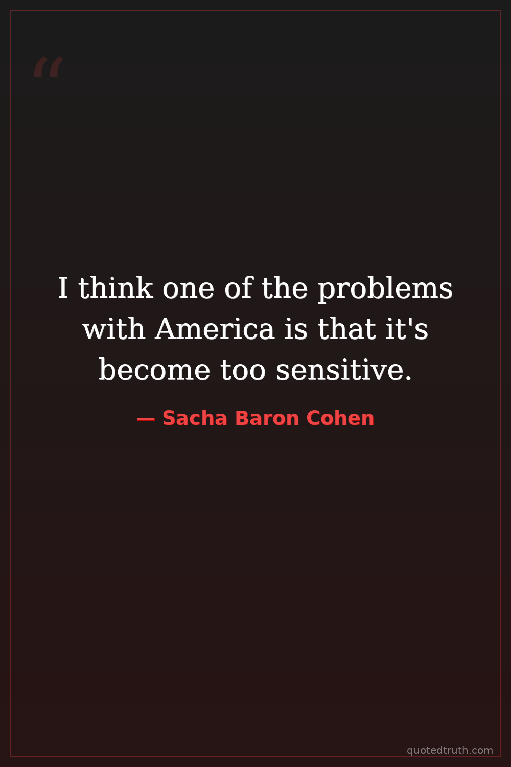 I think one of the problems with America is that it's become too sensitive.