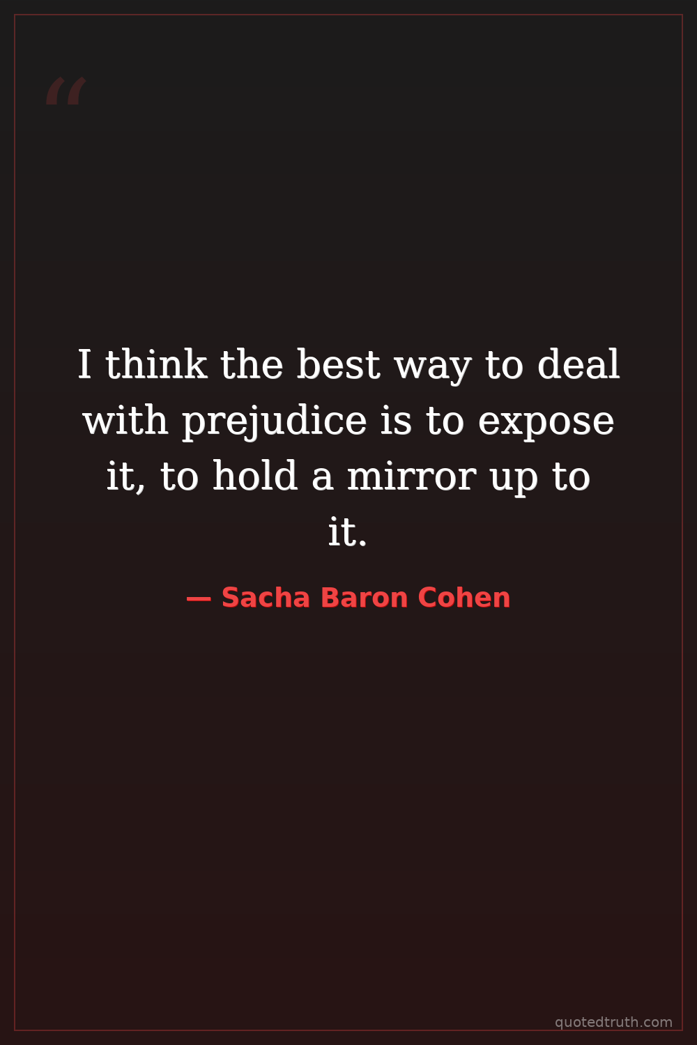 I think the best way to deal with prejudice is to expose it, to hold a mirror up to it.