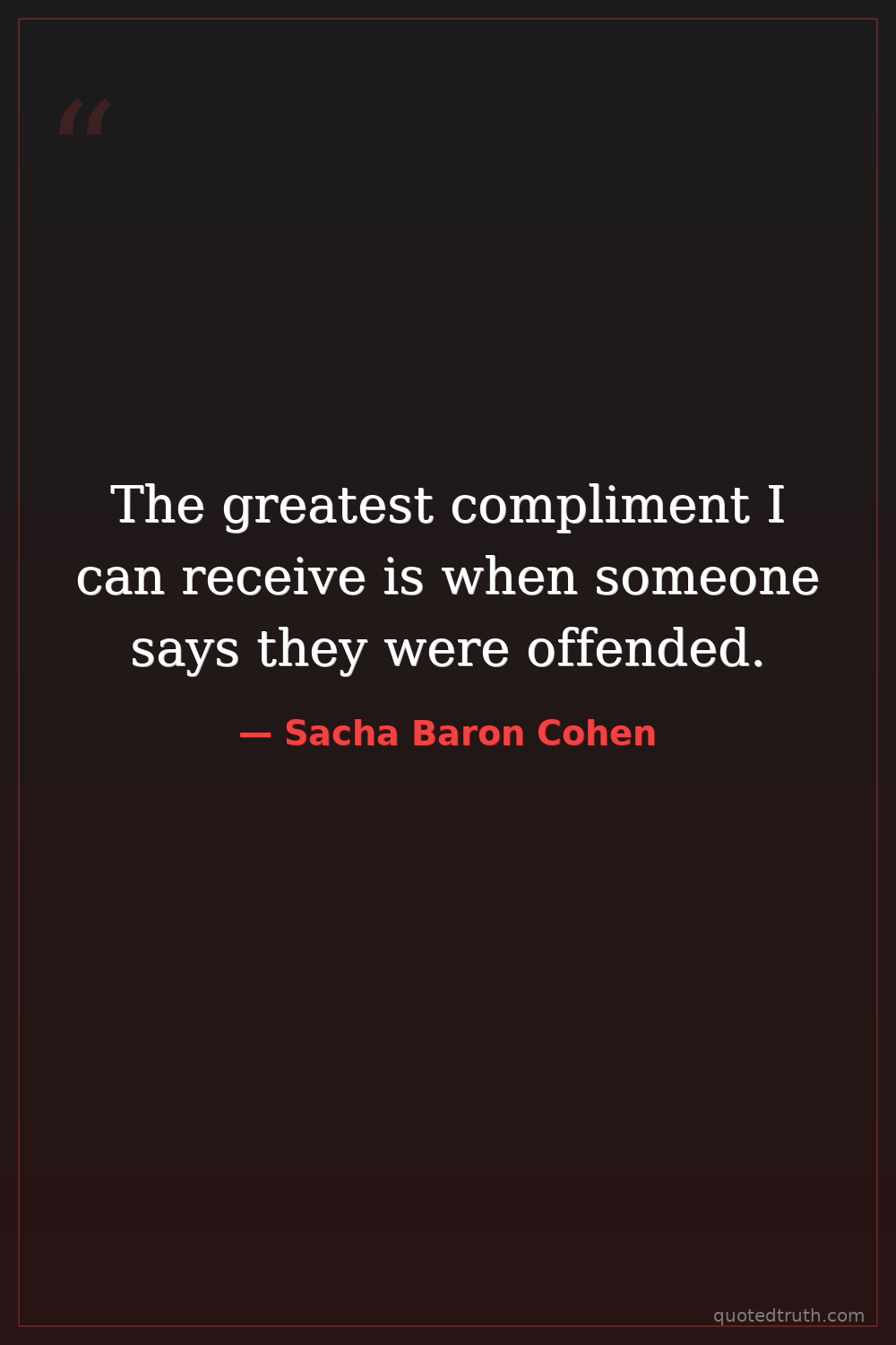 The greatest compliment I can receive is when someone says they were offended.