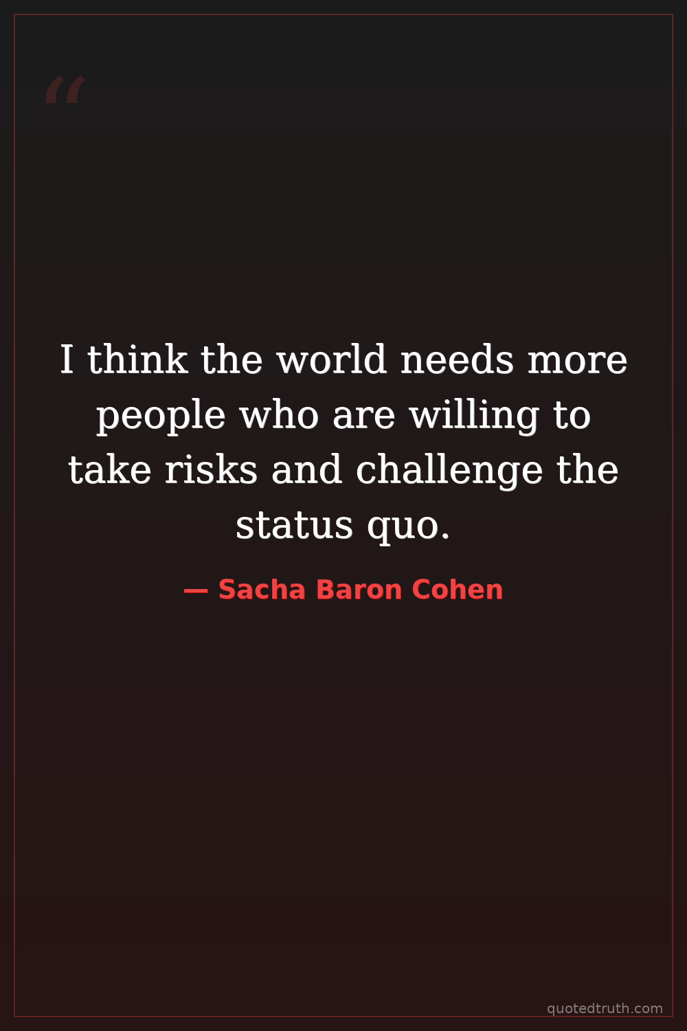 I think the world needs more people who are willing to take risks and challenge the status quo.