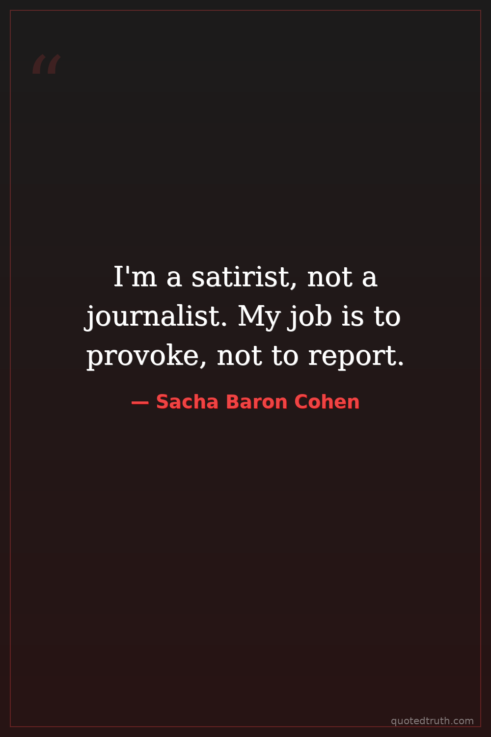 I'm a satirist, not a journalist. My job is to provoke, not to report.