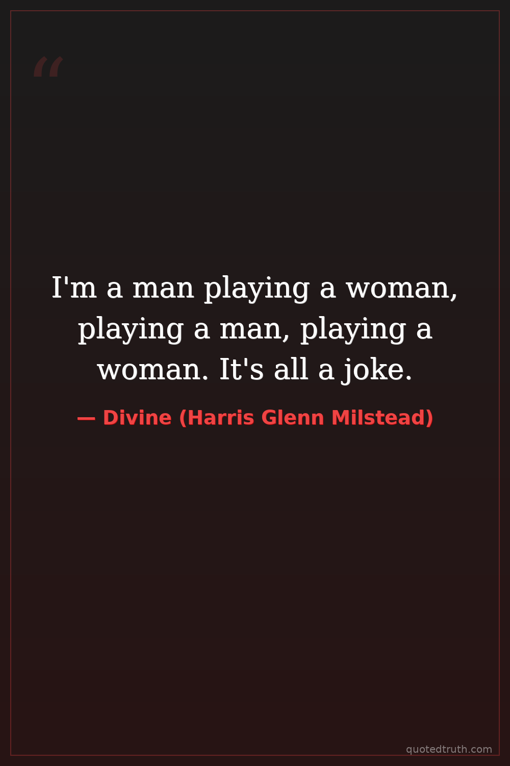 I'm a man playing a woman, playing a man, playing a woman. It's all a joke.