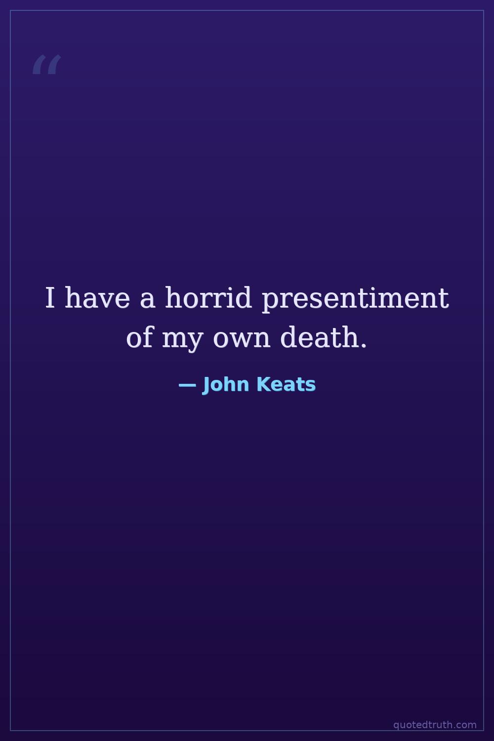 From a letter to Charles Brown, expressing his premonitions about his impending death from tuberculosis, a poignant and direct statement of his fear.