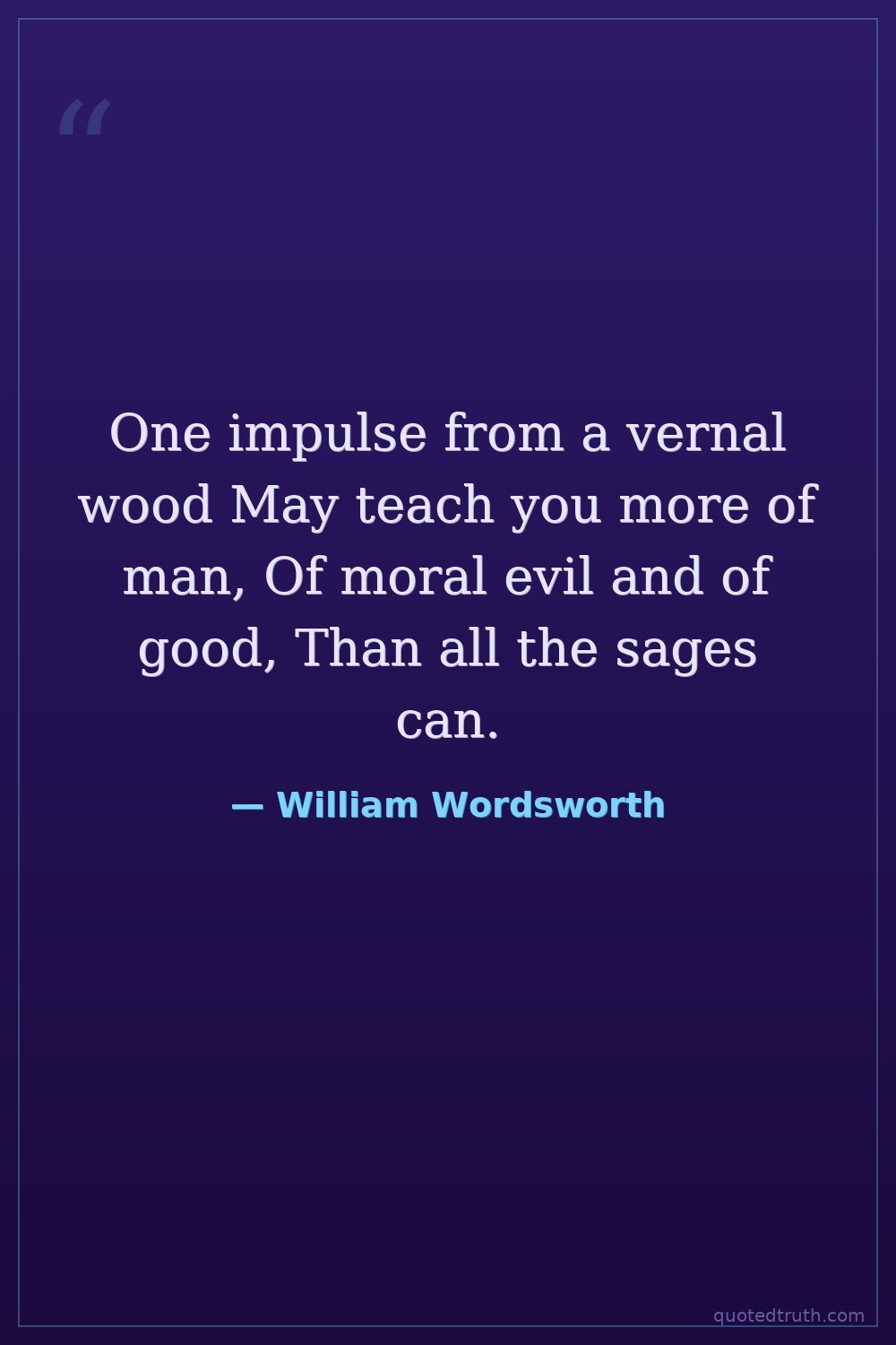 One impulse from a vernal wood May teach you more of man, Of moral evil and of good, Than all the sages can.