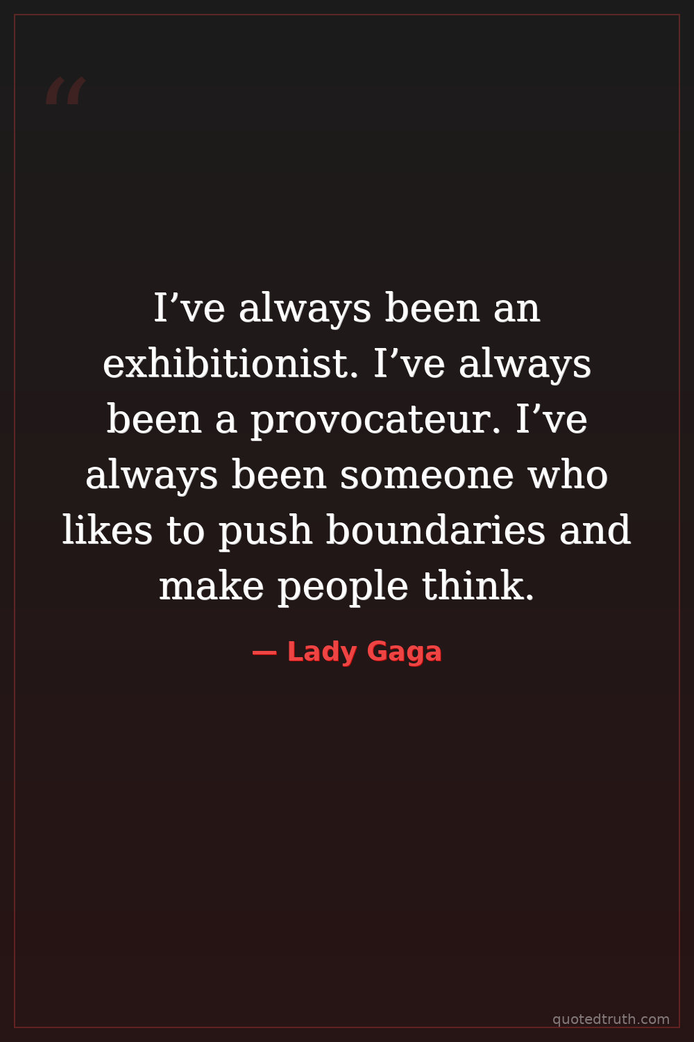 I’ve always been an exhibitionist. I’ve always been a provocateur. I’ve always been someone who likes to push boundaries and make people think.