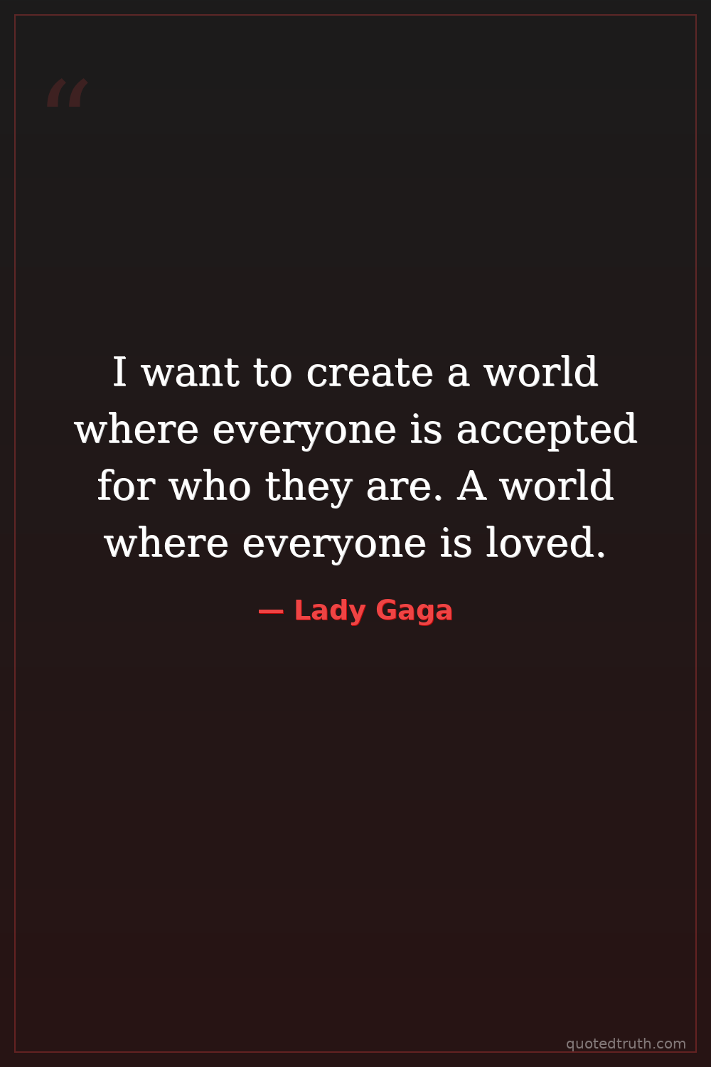 I want to create a world where everyone is accepted for who they are. A world where everyone is loved.