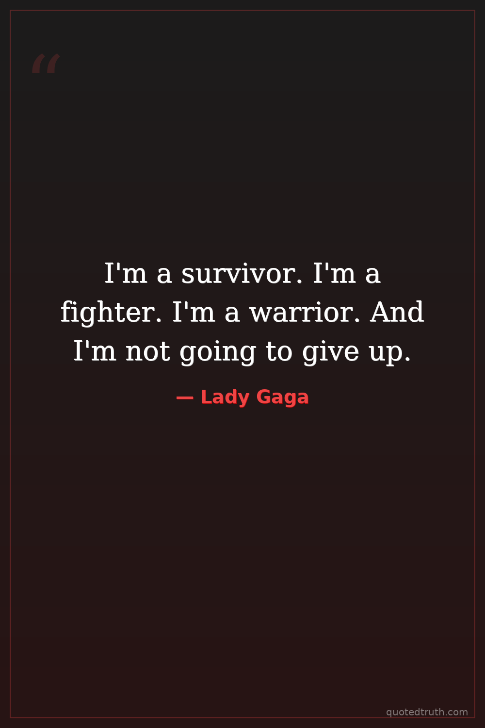 I'm a survivor. I'm a fighter. I'm a warrior. And I'm not going to give up.