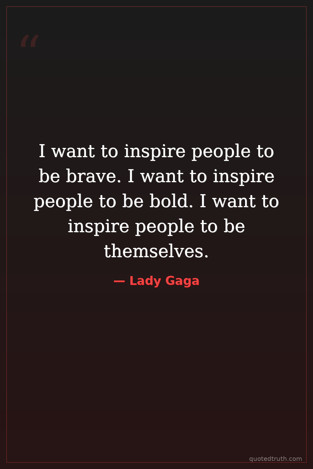I want to inspire people to be brave. I want to inspire people to be bold. I want to inspire people to be themselves.
