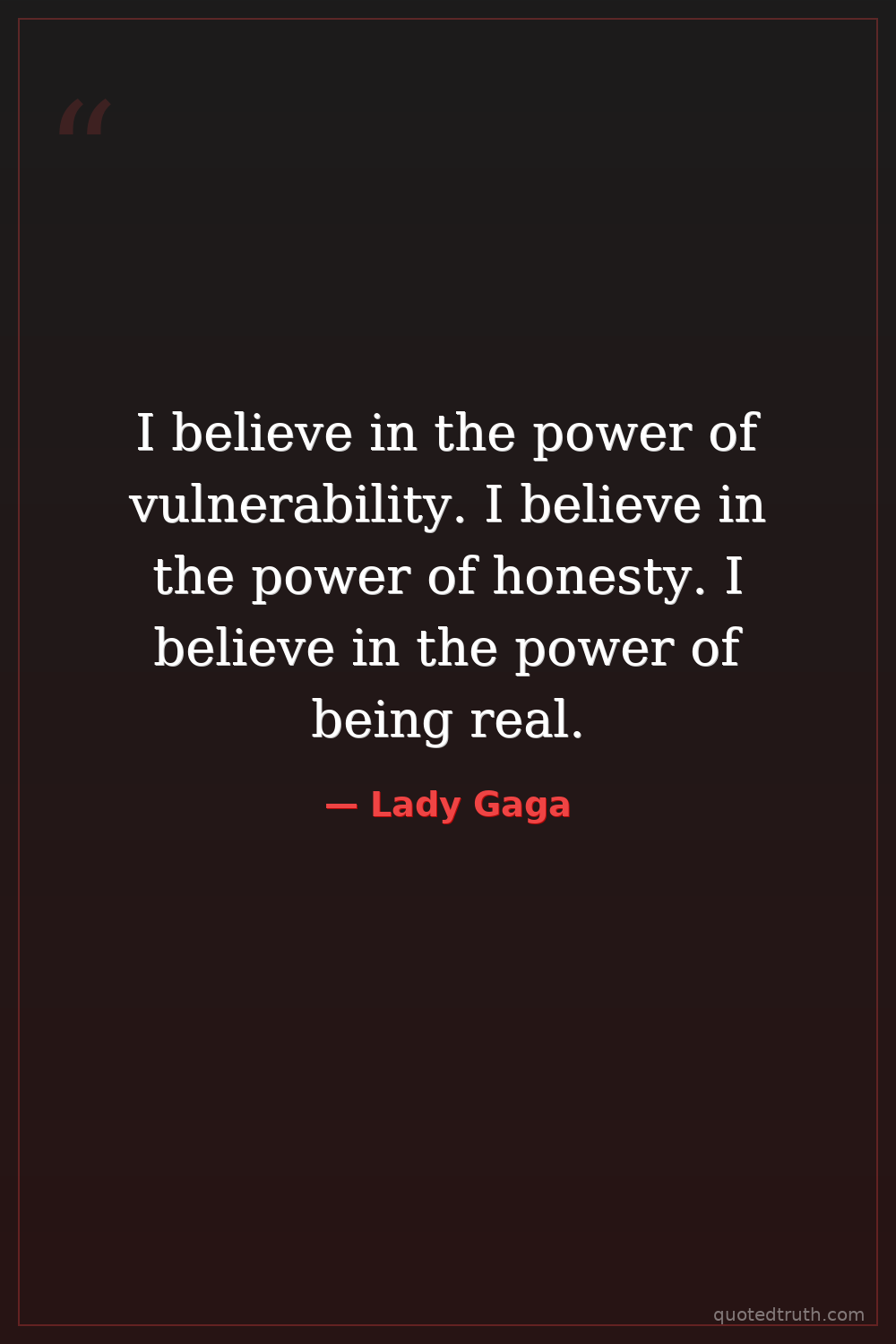 I believe in the power of vulnerability. I believe in the power of honesty. I believe in the power of being real.