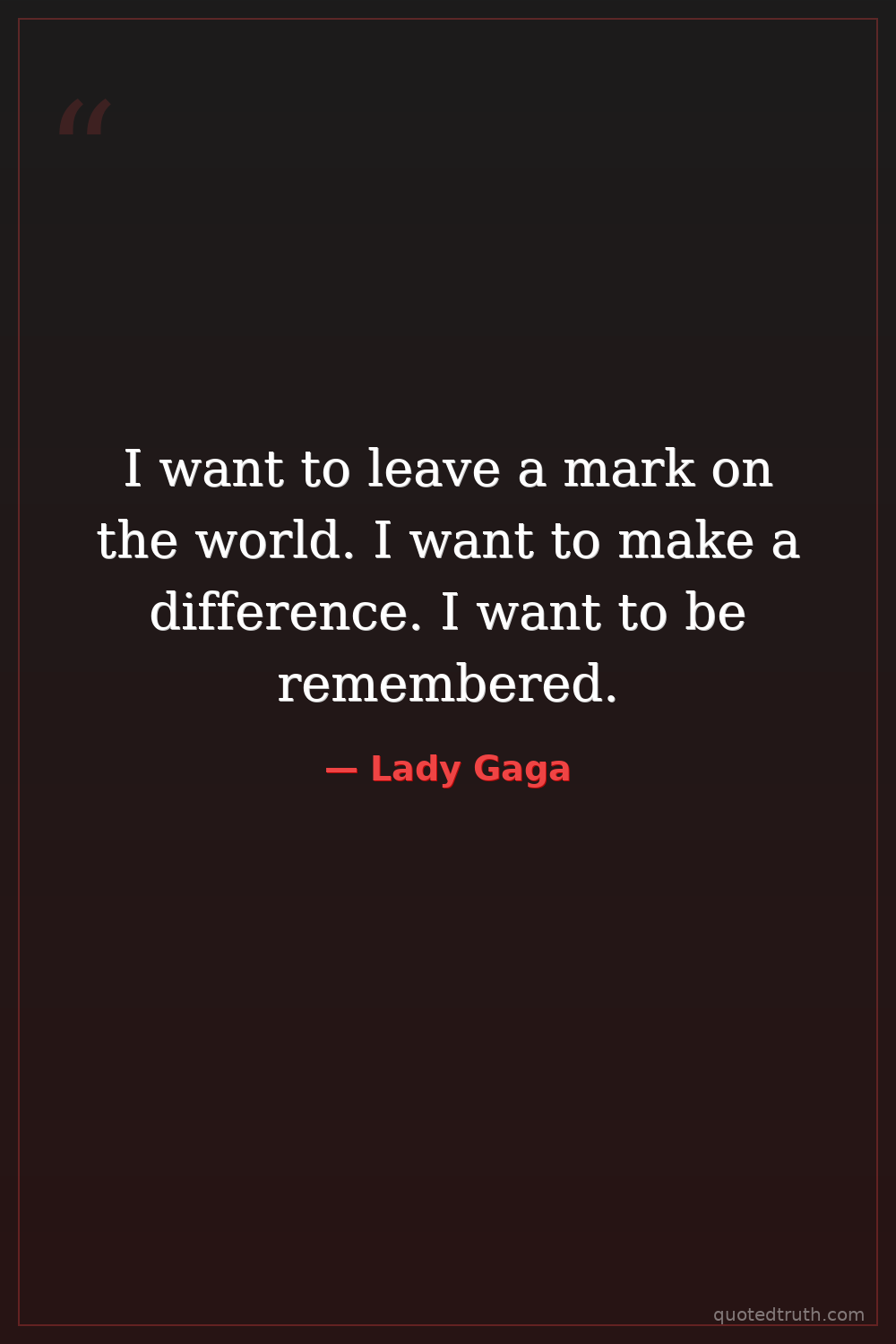 I want to leave a mark on the world. I want to make a difference. I want to be remembered.