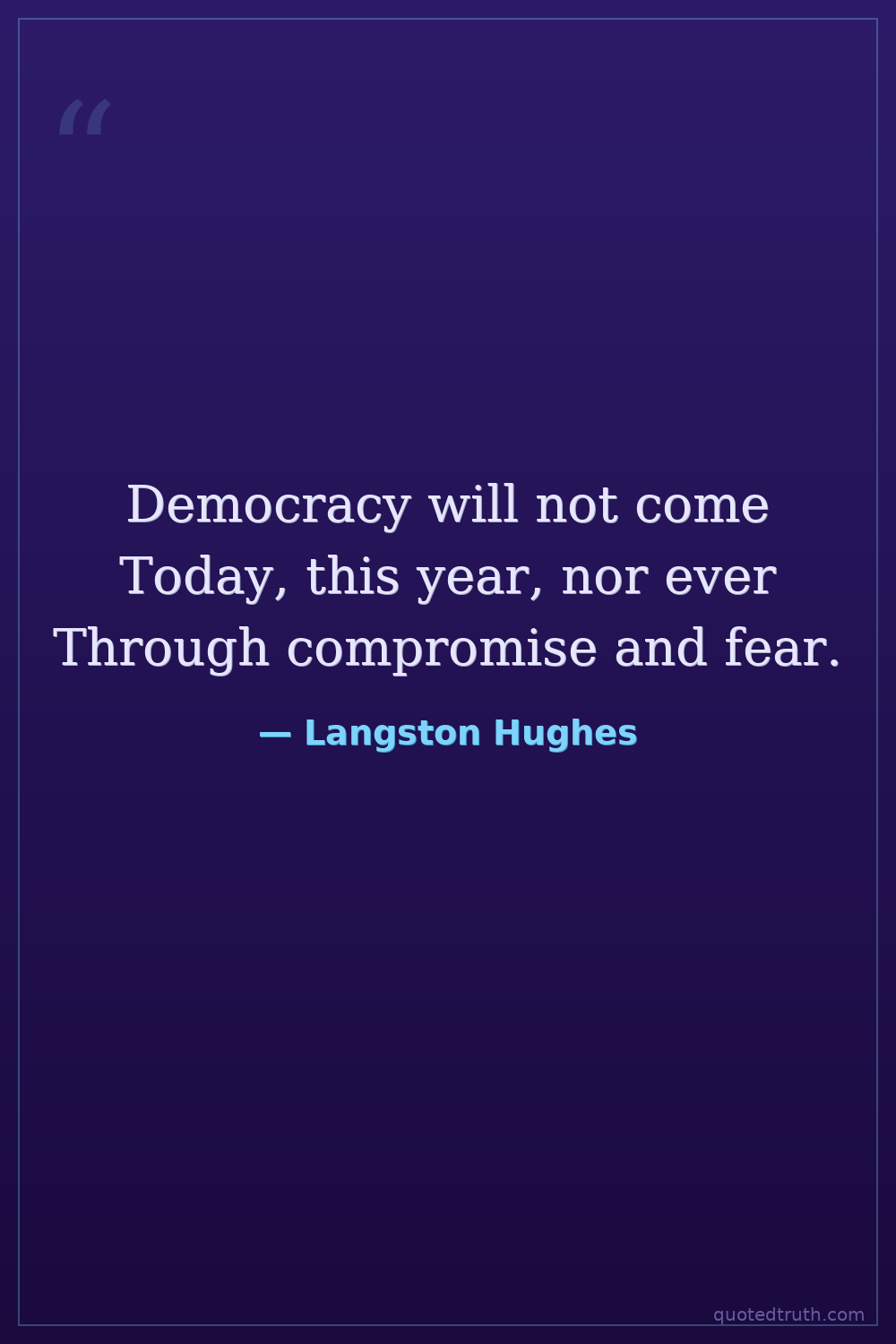 Democracy will not come Today, this year, nor ever Through compromise and fear.