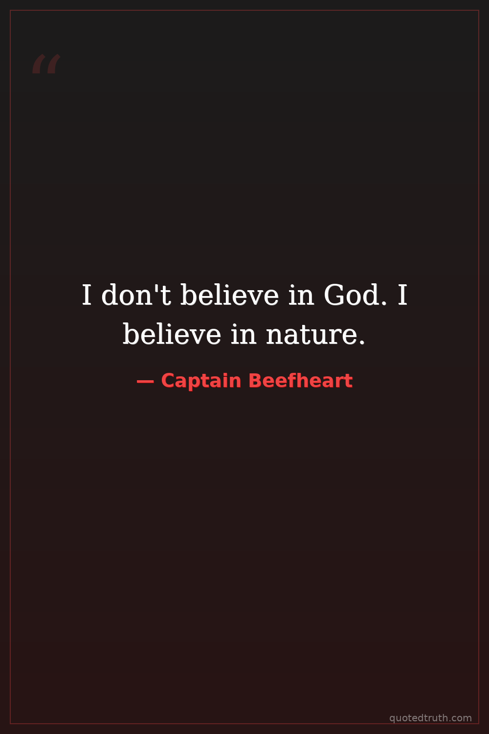 I don't believe in God. I believe in nature.